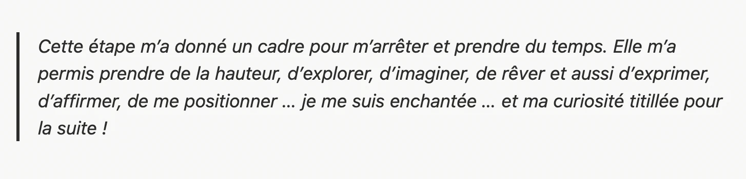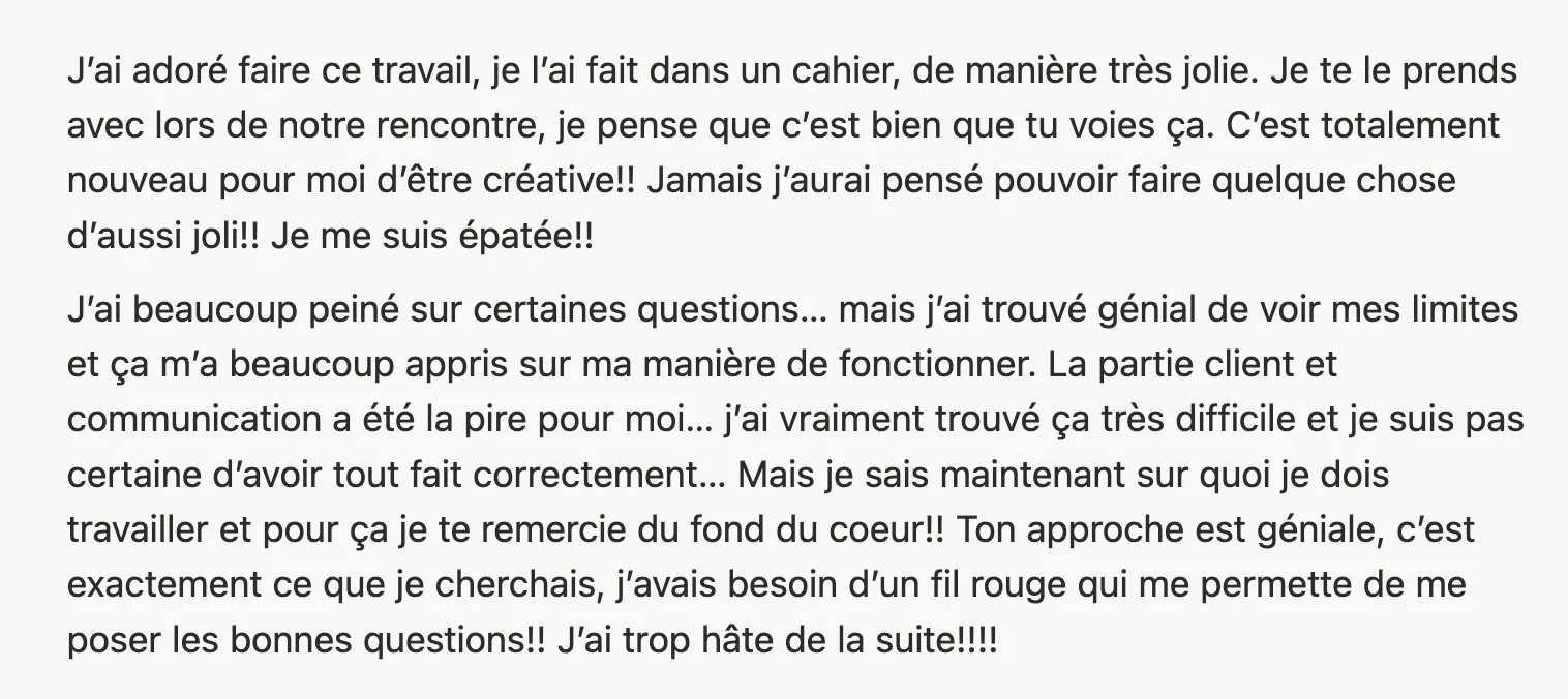 ✦ Tu es prêt·e à investir du temps dans la réflexion et la co-création, parce que tu vois ton projet et ton épanouissement pro sur le long terme.