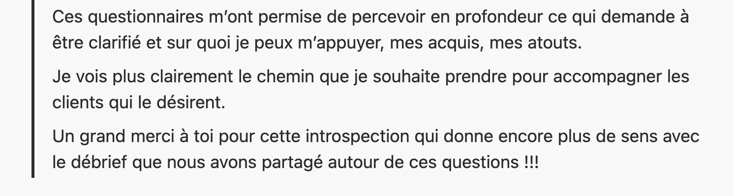 Tout l’intérêt de la phase d’introspection et de mon accompagnement, c’est de t’aider à y voir plus clair!