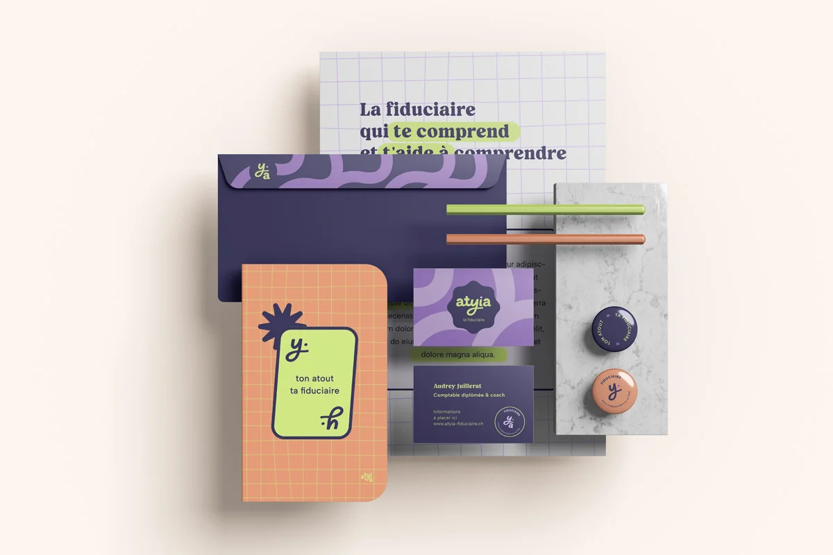 Nous programmons ensuite une matinée de réflexion commune pour trouver le nom de son entreprise (naming). Nous inventons ainsi Atyia : un jeu de mots avec du patois jurassien, son initiale A, et une sonorité féminine.